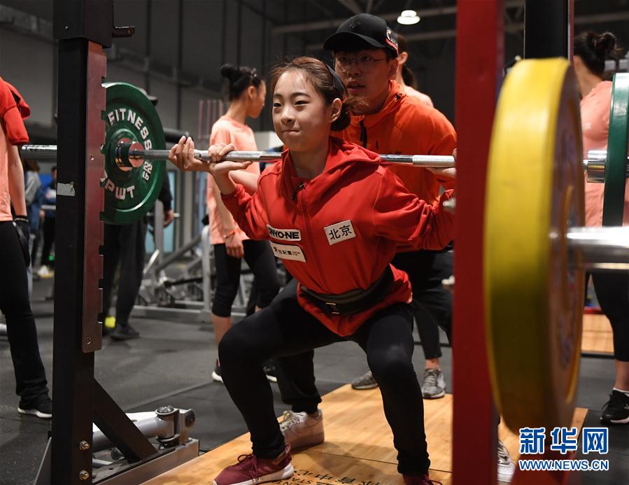 5月10日,北京市冰雪运动队花样滑冰运动员金冠汝(前)在测试深蹲。 当日,北京市冰雪运动队进行体能测试,本次体能测试由基础体能、躯干稳定性和上下肢左右侧力量均衡性、板块体能三组构成,队员们在测试中进行短跑、纵跳、深蹲、卧推等项目考核。 新华社记者张晨霖摄