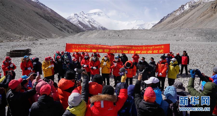 这是5月11日在珠峰登山大本营拍摄的2020年春季登山垃圾清理回收仪式现场。 当日,2020年春季登山垃圾清理回收活动在海拔5200米的珠峰登山大本营举行。珠穆朗玛峰、卓奥友峰、希夏邦马峰三座山峰清理的垃圾将按分类回收,交给山峰所在地环保部门处理;部分可回收登山垃圾将回收处理。 此次活动由西藏自治区体育局和中国登山协会主办。西藏自治区体育局局长尼玛次仁表示,三座山峰的垃圾清理工作于4月20日启动,西藏自治区登山队、登山协会、西藏圣山公司、西藏拉萨喜马拉雅登山向导学校承担清理工作。目前,卓奥友峰、希夏邦马峰登山垃圾清理活动已完成,珠穆朗玛峰清理登山垃圾活动将持续至6月。 新华社记者 普布扎西 摄