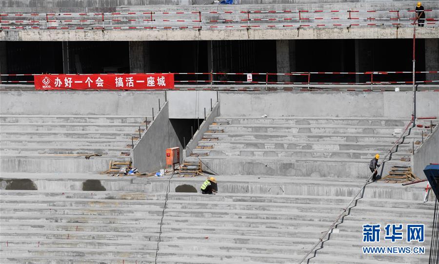 5月11日,工人在三亚国际体育产业园体育场内施工。 近日,海南持续高温。在第六届亚洲沙滩运动会(亚沙会)赛事场馆三亚国际体育产业园体育场施工现场,工人头顶烈日施工,加紧建设。据了解,体育场目前正在进行钢结构安装工作,预计5月底安装完成,体育场整体将于9月30日完工交付。第六届亚沙会将于2020年11月28日至12月6日在三亚举行。 新华社记者 杨冠宇 摄