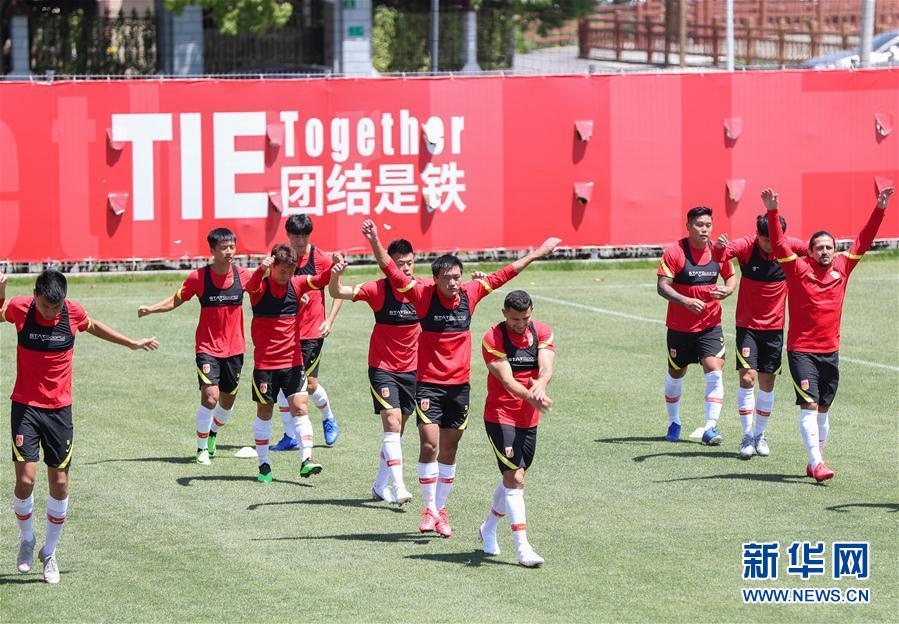5月12日,国足球员在训练中。当日,正在上海集训的国家男足继续进行室外训练。5月10日,国家男足抵达上海的训练基地,开启为期17天的集训。 新华社记者 丁汀 摄
