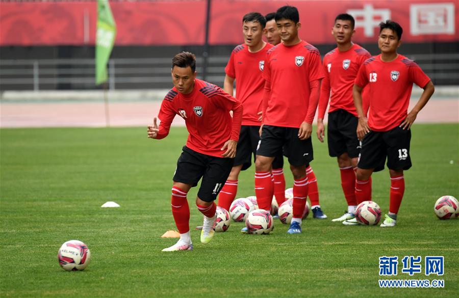 5月13日,陕西大秦之水队球员黄浦(左一)在公开训练课上。当日,中甲陕西大秦之水队在陕西省渭南市体育中心体育场举行公开训练课,全队在做好疫情防控工作的前提下在主场恢复训练,备战中甲联赛。 新华社记者:李一博摄