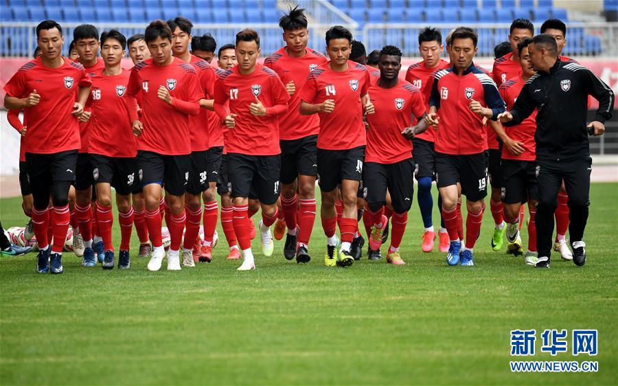 5月13日,陕西大秦之水队球员在公开训练课上慢跑热身。 当日,中甲陕西大秦之水队在陕西省渭南市体育中心体育场举行公开训练课,全队在做好疫情防控工作的前提下在主场恢复训练,备战中甲联赛。 新华社记者:李一博摄