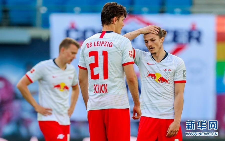 5月16日,莱比锡队球员希克(中)和队友萨比策(右)在比赛中。 受新冠肺炎疫情影响而停赛的2019-2020赛季德国足球甲级联赛迎来重启,成为欧洲五大联赛中最早恢复的联赛。在重启后的首轮比赛中,莱比锡队主场以1比1战平弗赖堡队。 新华社/路透