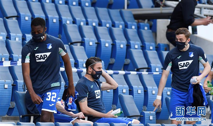 5月16日,霍芬海姆队替补球员在场边观战。 当日,受新冠肺炎疫情影响而停赛的2019-2020赛季德国足球甲级联赛迎来重启,成为欧洲五大联赛中最早恢复的联赛。在重启后的首轮比赛中,柏林赫塔队客场以3比0战胜霍芬海姆队。 新华社/路透