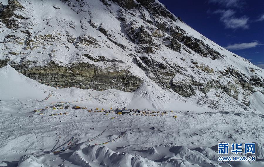 位于珠峰东绒布冰川旁海拔6500米的珠峰前进营地(5月22日摄,无人机照片)。新华社记者 晋美多吉 摄
