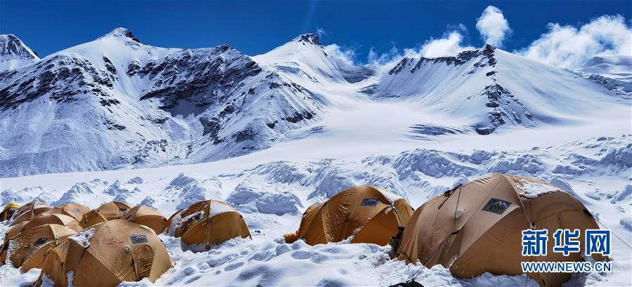 被大雪覆盖的海拔6500米的珠峰前进营地(5月22日摄,手机照片)。新华社记者 晋美多吉 摄