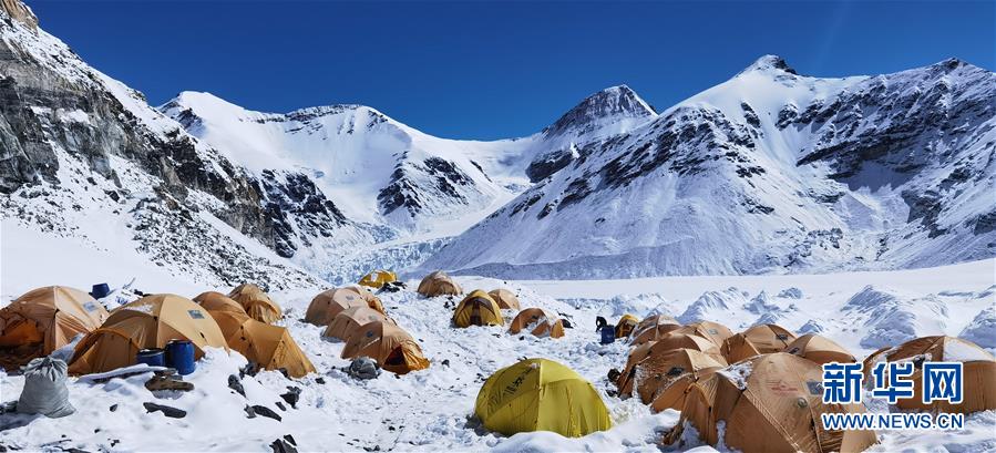 被大雪覆盖的海拔6500米的珠峰前进营地(5月22日摄,手机照片)。新华社记者 晋美多吉 摄