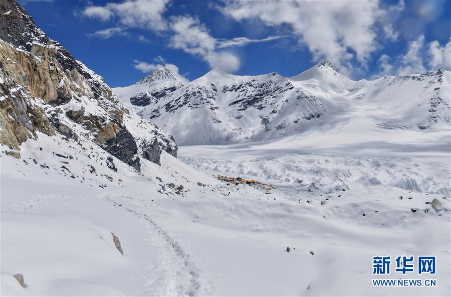 被大雪覆盖的海拔6500米的珠峰前进营地(5月22日摄)。新华社记者 晋美多吉 摄