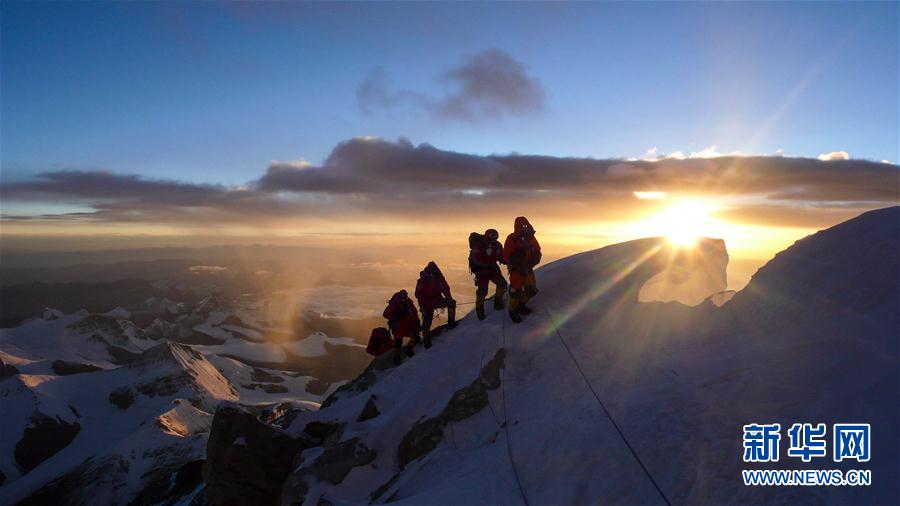 1960年5月25日,中国登山运动员王富洲、贡布、屈银华三人首次从北坡登上珠穆朗玛峰,创造了人类历史上第一次从北坡登上世界第一高峰的壮举。登山勇士们不畏险阻、一往无前的精神,鼓舞着一代代登山人向着珠穆朗玛峰前进。 这是2008年5月8日,北京奥运圣火珠峰传递登山队跨过珠峰第二台阶后,迎接新曙光。 新华社特约记者尼玛次仁摄