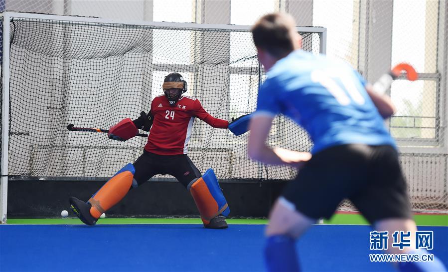 5月29日,内蒙古男子青年曲棍球队球员敖德超(左)在训练中。 连日来,在做好常态化疫情防控的前提下,内蒙古男子青年曲棍球队在内蒙古呼伦贝尔市莫力达瓦旗曲棍球训练基地积极开展日常训练。 新华社发(李志鹏摄)