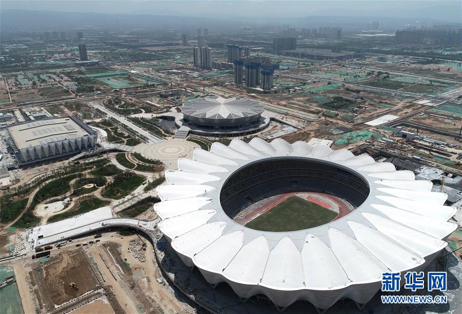 近日,西安奥体中心“一场两馆”建设进入收尾阶段,三座场馆计划将于6月整体交付。第十四届全国运动会的主场馆——西安奥体中心包括一座可容纳6万名观众的体育场,一座可容纳1.8万名观众的体育馆和一座有4000个座位的游泳馆。 这是5月29日无人机拍摄的西安奥体中心。 新华社记者张博文摄