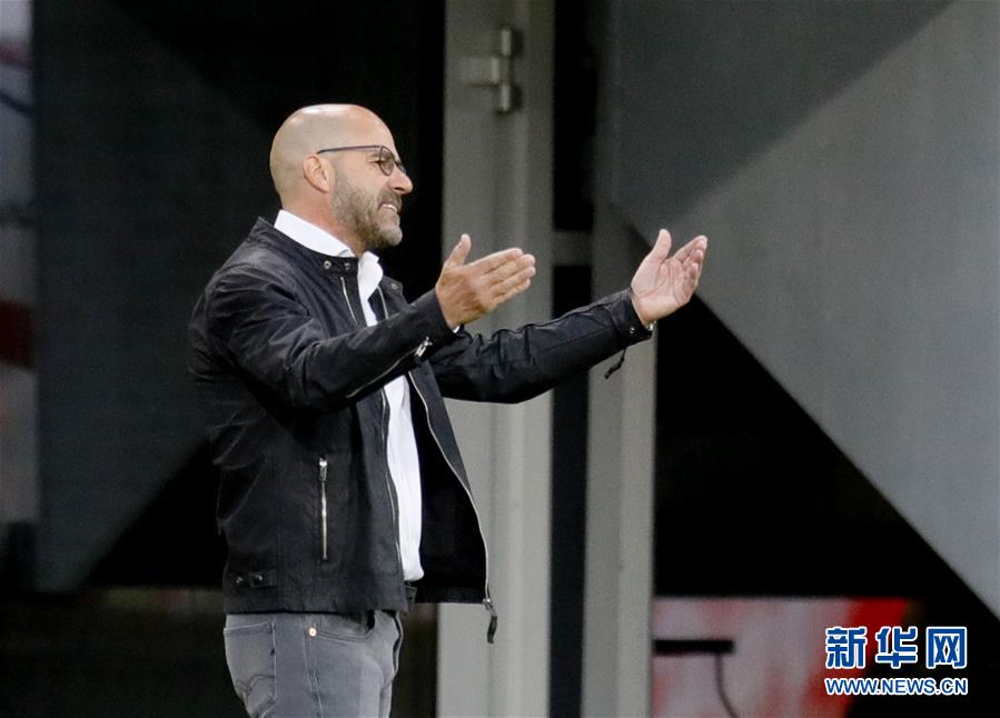 5月29日,勒沃库森队主教练博斯在场边指挥。 当日,在2019-2020赛季德甲联赛第29轮比赛中,勒沃库森队客场以1比0战胜弗赖堡队。 新华社/法新