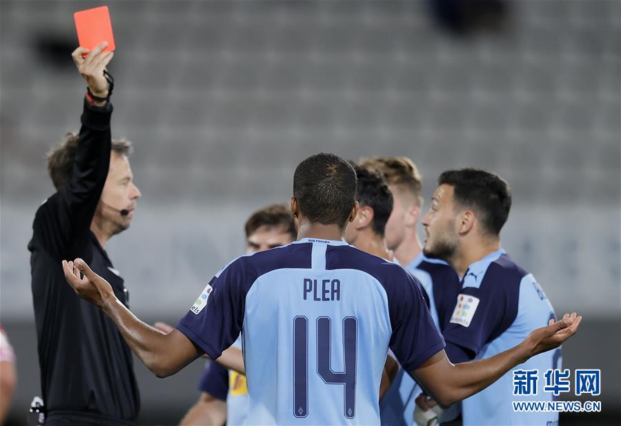 6月5日,门兴格拉德巴赫队球员普利亚(前)在比赛中被主裁判出示红牌罚下。 当日,在2019-2020赛季德国足球甲级联赛第30轮比赛中,弗赖堡队主场以1比0战胜门兴格拉德巴赫队。 新华社/法新