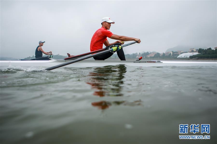 6月8日,运动员赵超在贵州省水上运动管理中心进行训练。 近日,贵州省赛艇队全面进入备战阶段,在做好疫情防控的前提下抓紧时间坚持训练,全力备战2021年全运会等比赛。 新华社记者欧东衢摄
