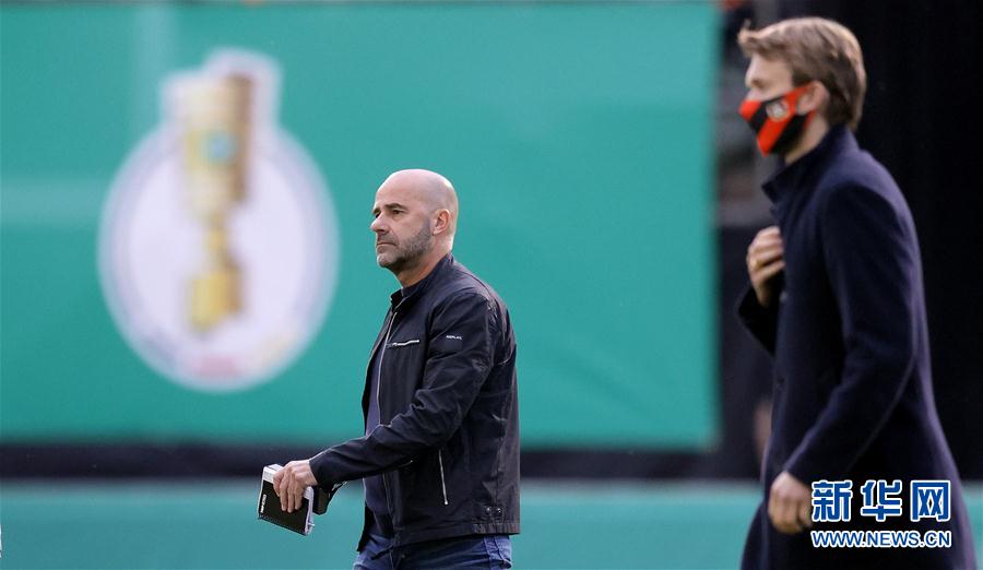 6月9日,勒沃库森队主帅伯塞(左)在比赛前。 当日,在德国沃尔克林根举行的2019-2020赛季德国杯足球赛半决赛中,勒沃库森队客场以3比0战胜萨尔布吕肯队,晋级决赛。 新华社/路透