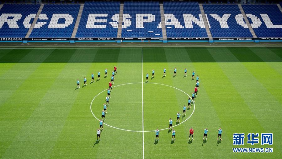 6月10日,西甲西班牙人队球员在训练中组成了“12”的字样向球迷致敬。 当日,西甲西班牙人队的球员在巴塞罗那科尔内亚·埃尔普拉特球场进行训练。球员们在训练中组成了“12”的字样,寓意球迷是球队的“第12人”。西甲联赛于6月11日正式复赛,目前所有比赛均空场举行。 新华社发(西班牙人队供图)