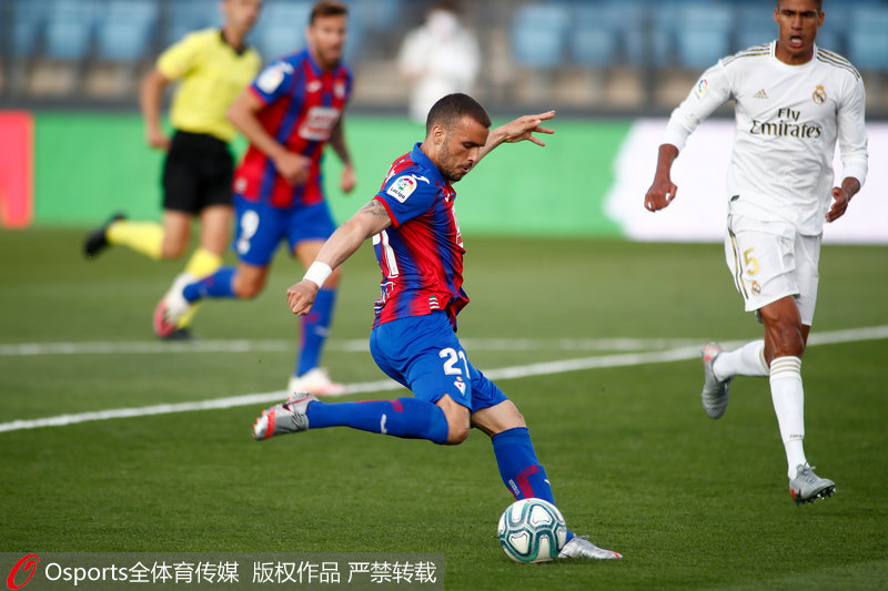 人民网北京6月15日电 北京时间6月15日凌晨,2019/20赛季西甲第28轮一场焦点战在迪-斯蒂法诺球场打响,皇家马德里主场迎战埃瓦尔。克罗斯、拉莫斯和马塞洛先后进球,阿扎尔贡献助攻,最终皇马以3-1轻取对手,继续以2分之差紧追巴萨。