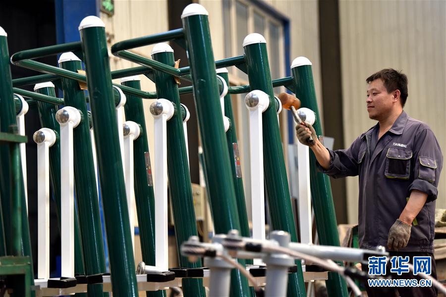 6月14日,在河北省定州市一家体育器材生产企业,员工在车间工作。 河北省定州市是体育用品产业名市,拥有健身体育文化用品企业400余家。连日来,在做好疫情防控的前提下,企业全面复工复产赶制订单,确保员工稳岗增收。 新华社记者 王晓 摄