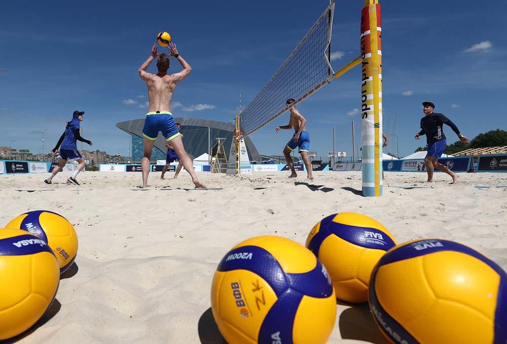 央视网消息:北京时间6月15日,俄罗斯喀山,俄罗斯沙滩排球俱乐部训练备战。