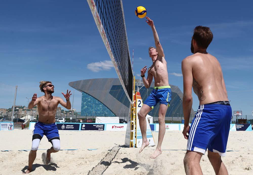 央视网消息:北京时间6月15日,俄罗斯喀山,俄罗斯沙滩排球俱乐部训练备战。