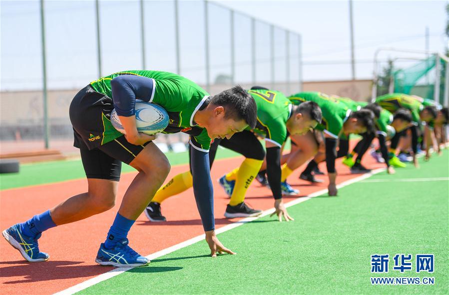 6月16日,内蒙古男子橄榄球队队员准备进行体能冲刺训练。 近日,在做好疫情防控的前提下,内蒙古自治区橄榄球队在呼和浩特市武川县开展训练,全力备战2021年全运会等比赛。 新华社记者彭源摄