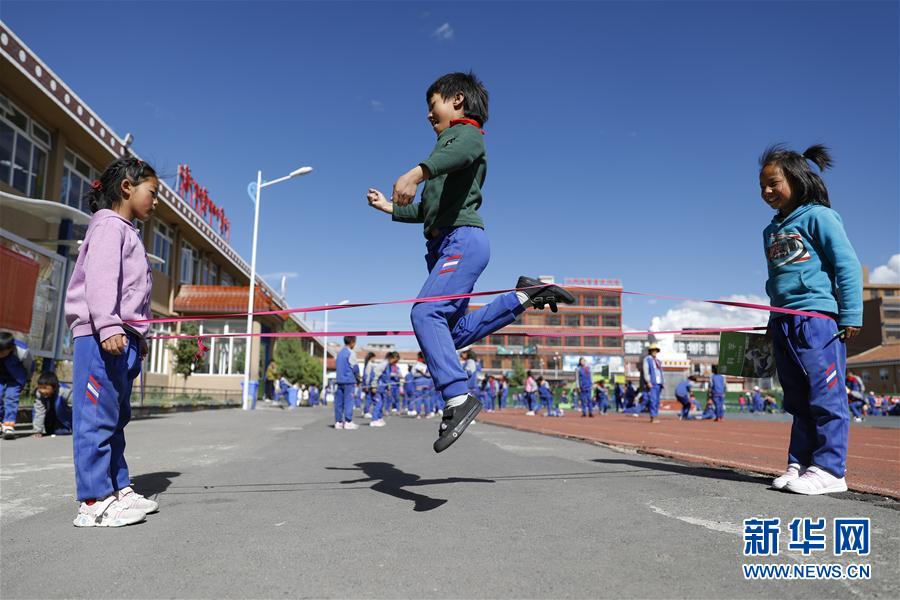 近年来,四川省阿坝藏族羌族自治州不断强化学校体育工作,实施学校体育固本行动,培养和引导学生热爱体育运动,养成良好的体育运动习惯,让学生在体育锻炼中享受乐趣、增强体质、健全人格、锤炼意志。该州各学校积极开展形式多样的校园阳光体育活动,保证每天让学生参加一小时的户外体育活动,确保学生掌握两项体育技能。2020年,该州初中毕业升学体育考试成绩的总分从30分提高到了70分。 图为四川省阿坝藏族羌族自治州阿坝县民族寄宿制小学的学生在课间活动时跳皮筋(6月14日摄)。 新华社记者 沈伯韩 摄