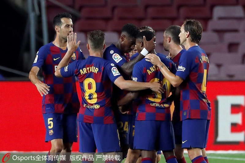 人民网北京6月17日电 北京时间6月17日凌晨4点,19/20赛季西甲联赛第29轮迎来一场焦点战役。在诺坎普球场,巴塞罗那主场2-0轻取莱加内斯,多赛一场领先皇马5分。法蒂用一记穿裆冷射打破僵局,梅西罚进自己奔袭制造的点球。