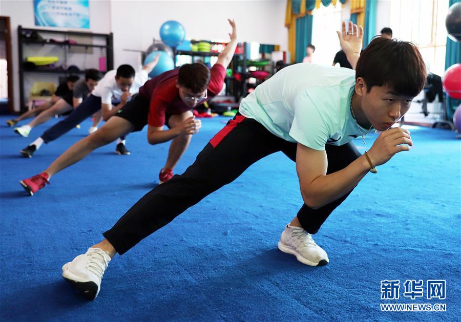 6月16日,短道速滑运动员塔猛(右一)在训练中。近日,在做好疫情防控工作的前提下,长春市冬季运动管理中心组织包括短道速滑、自由式滑雪、单板滑雪等在内的冰雪项目一线队教练员和运动员在长春莲花山滑雪场进行恢复性训练,之后,他们将各自归队开展日常训练。 新华社记者 雒圆 摄