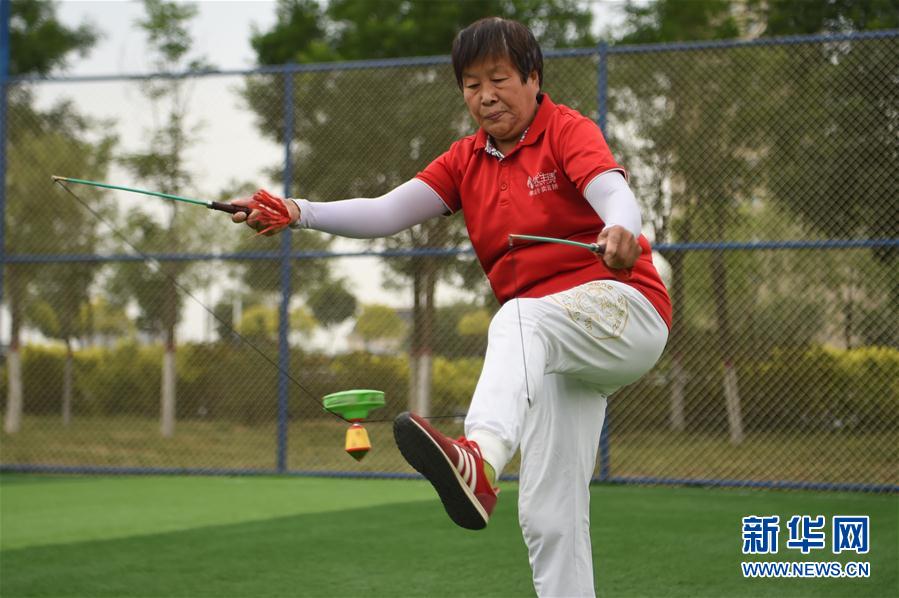 6月17日,一位老年空竹爱好者在抖空竹。 大鹏展翅、招财进宝、蜻蜓点水……在空竹高速旋转发出的嗡嗡声中,这些精彩的抖空竹动作引起了路人的关注。在内蒙古呼和浩特市,有一群老年空竹爱好者每天都会到锡林公园练习抖空竹;他们平均年龄超过了70岁,其中年龄最大的超过了80岁。老年空竹爱好者们通过抖空竹的方式锻炼身体,保持健康的身心状态。 新华社发(李志鹏摄)