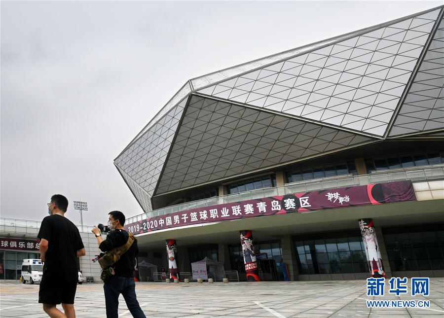 2019-2020赛季中国男子篮球职业联赛(CBA)将于6月20日复赛,将以赛会制空场比赛的方式在青岛与东莞两个赛区展开。青岛赛区作为承办复赛第一阶段的两大赛区之一,将有10支球队进行39场比赛。目前,承办青岛赛区的青岛国信体育馆已进行了场馆内部的升级改造。 图为6月18日,两名媒体记者在青岛国信体育馆外。 新华社记者 李紫恒 摄
