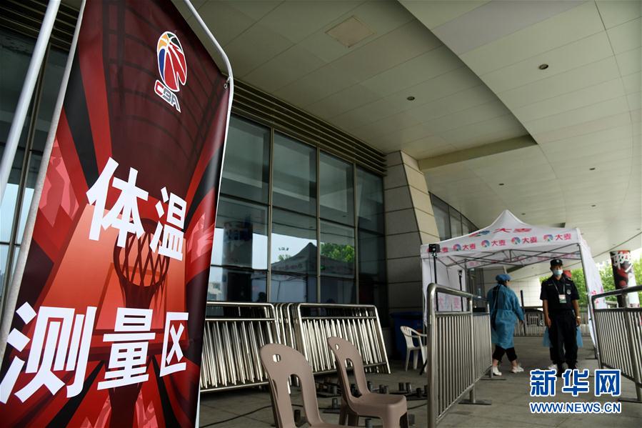 2019-2020赛季中国男子篮球职业联赛(CBA)将于6月20日复赛,将以赛会制空场比赛的方式在青岛与东莞两个赛区展开。青岛赛区作为承办复赛第一阶段的两大赛区之一,将有10支球队进行39场比赛。目前,承办青岛赛区的青岛国信体育馆已进行了场馆内部的升级改造。 图为6月18日拍摄的在青岛国信体育馆外设置的体温测量区。 新华社记者 李紫恒 摄