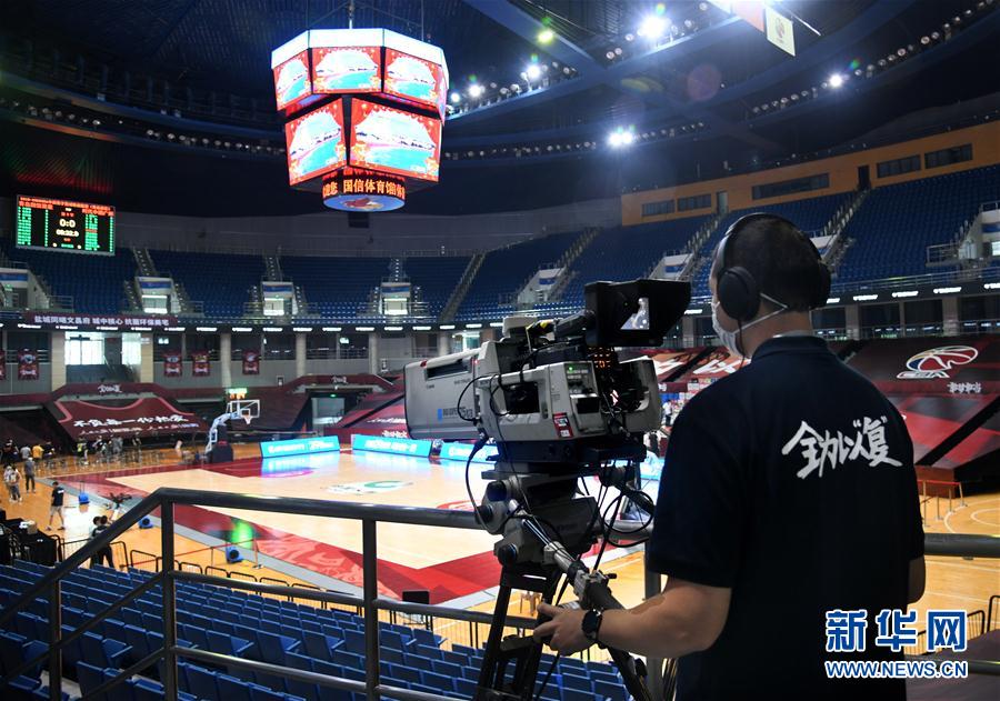 2019-2020赛季中国男子篮球职业联赛(CBA)将于6月20日复赛,将以赛会制空场比赛的方式在青岛与东莞两个赛区展开。青岛赛区作为承办复赛第一阶段的两大赛区之一,将有10支球队进行39场比赛。目前,承办青岛赛区的青岛国信体育馆已进行了场馆内部的升级改造。 图为6月18日,一名工作人员在青岛国信体育馆内测试转播设备。 新华社记者 李紫恒 摄