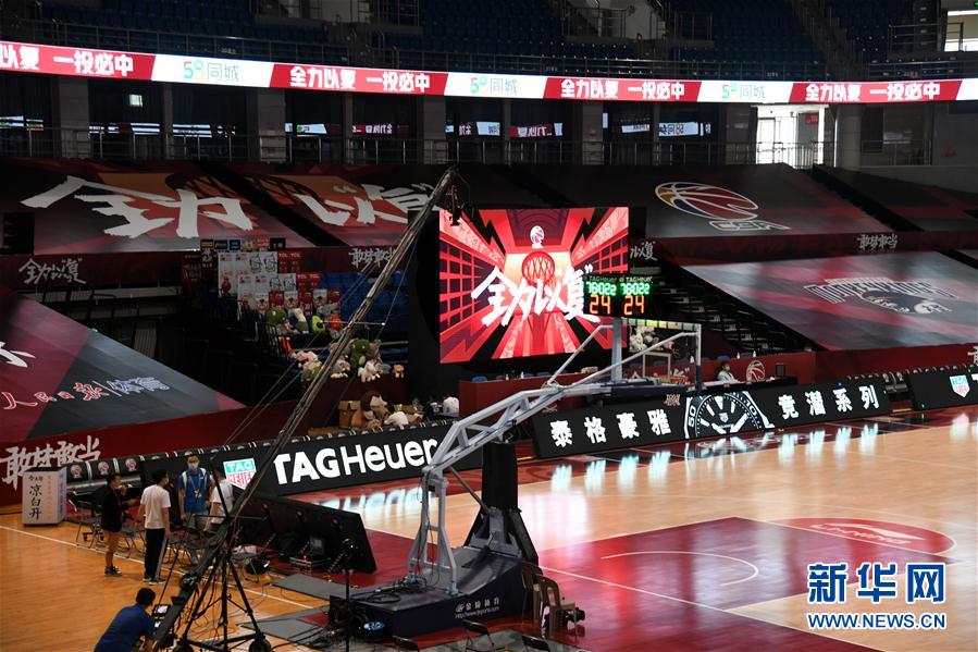 2019-2020赛季中国男子篮球职业联赛(CBA)将于6月20日复赛,将以赛会制空场比赛的方式在青岛与东莞两个赛区展开。青岛赛区作为承办复赛第一阶段的两大赛区之一,将有10支球队进行39场比赛。目前,承办青岛赛区的青岛国信体育馆已进行了场馆内部的升级改造。 图为6月18日,工作人员在青岛国信体育馆内进行赛前准备。 新华社记者 李紫恒 摄