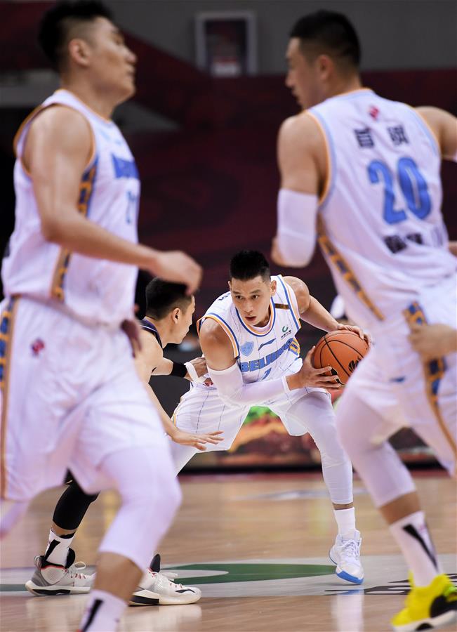 6月20日,北京首钢队球员林书豪(右二)在比赛中伺机突破。 当日,在山东青岛国信体育馆进行的2019-2020赛季中国男子篮球职业联赛(CBA)复赛第一阶段比赛中,北京首钢队以91比82战胜辽宁本钢队。 新华社记者 李紫恒 摄