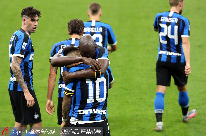 国际米兰(3-4-1-2):1-汉达诺维奇/37-什克里尼亚尔,6-德弗赖,95-巴斯托尼/87-坎德雷瓦(73'摩西),23-巴雷拉,5-加利亚尔迪尼,15-阿什利-扬(73'比拉吉)/24-埃里克森(78'博尔哈-巴莱罗)/9-卢卡库,10-劳塔罗-马丁内斯(83'桑切斯)
