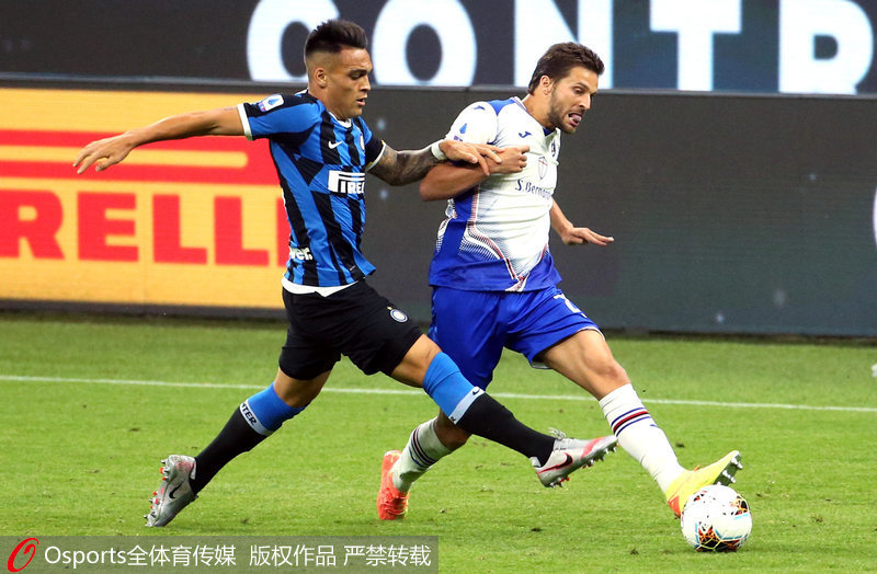 人民网北京6月22日电 北京时间6月22日3时45分,意甲进行第25轮1场补赛,国际米兰主场2比1击败桑普多利亚,与尤文积分差距缩小到6分。卢卡库与劳塔罗-马丁内斯各下一城,埃里克森贡献助攻。托斯比下半时扳回一分。