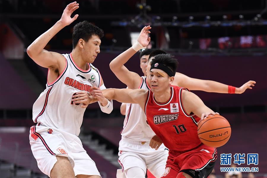 当日,在广东东莞举行的2019-2020赛季中国男子篮球职业联赛(CBA)复赛第一阶段比赛中,深圳马可波罗队对阵广东东莞银行队。 新华社记者 梁旭 摄
