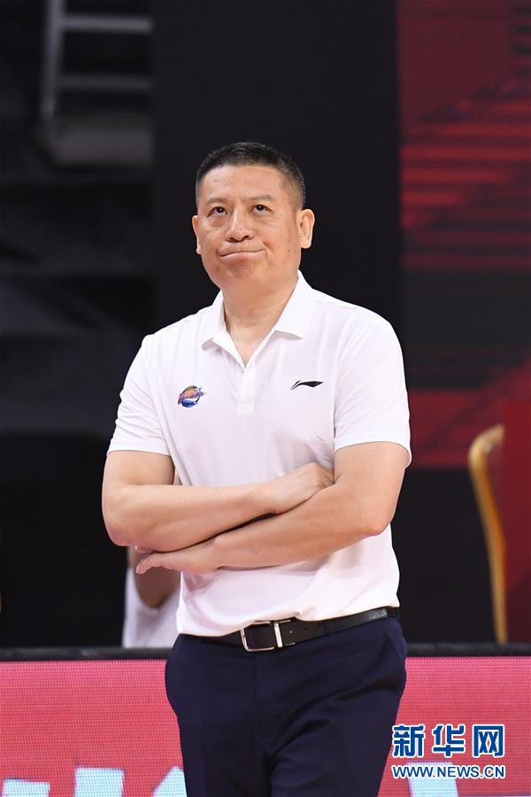 6月22日,四川五粮金樽队主教练周金利在比赛中。 当日,在广东东莞进行的2019-2020赛季中国男子篮球职业联赛(CBA)复赛第一阶段比赛中,四川五粮金樽队以101比72战胜天津先行者队。 新华社记者 梁旭 摄