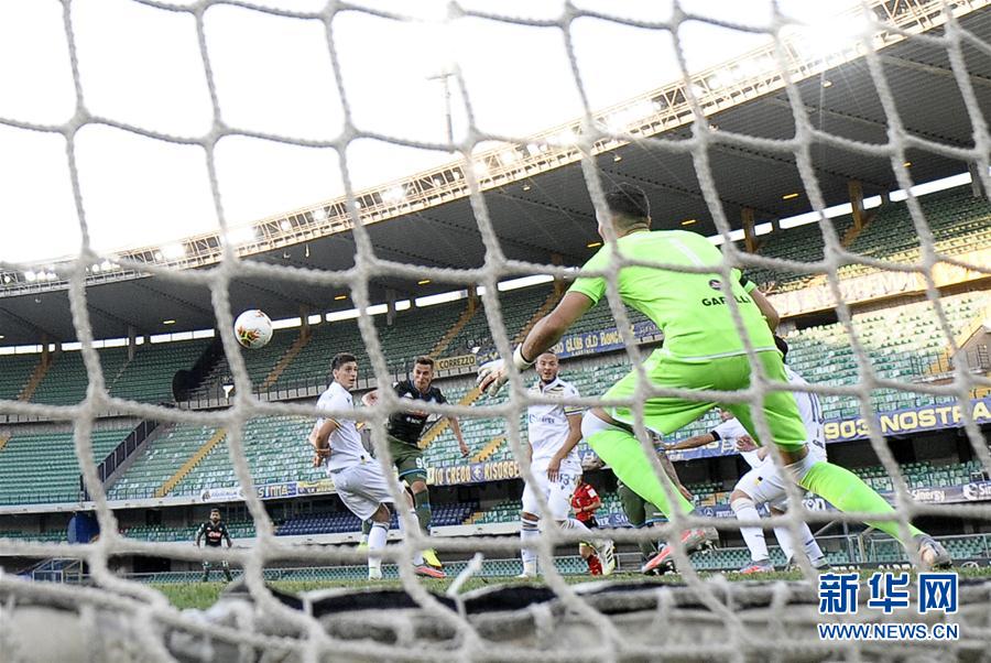 新华社照片,维罗纳(意大利),2020年6月24日 (体育)(16)足球——意甲:那不勒斯胜维罗纳 6月23日,那不勒斯队球员米利克(前左二)破门得分。 当日,在2019-2020赛季意大利足球甲级联赛第27轮比赛中,那不勒斯队客场以2比0战胜维罗纳队。 新华社发(阿尔贝托·林格利亚摄)