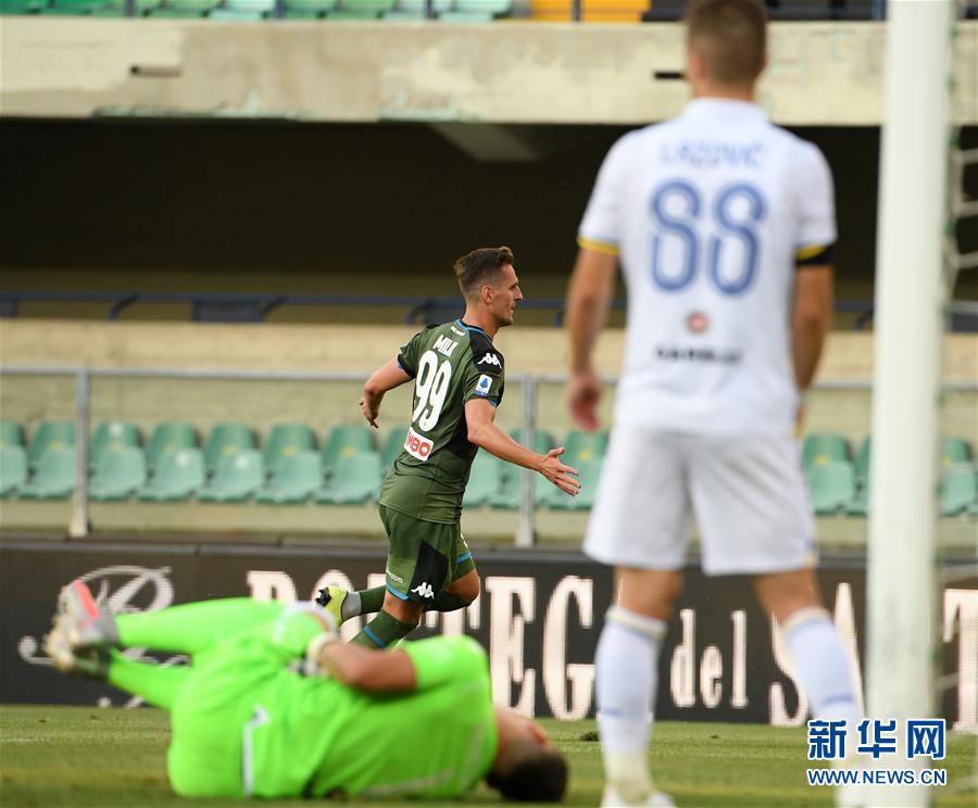 6月23日,那不勒斯队球员米利克在比赛中庆祝进球。 当日,在2019-2020赛季意大利足球甲级联赛第27轮比赛中,那不勒斯队客场以2比0战胜维罗纳队。 新华社发(阿尔贝托·林格利亚摄)