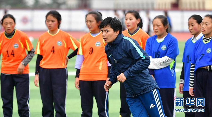 带球绕桩、争顶头球、分组对抗……在海拔3200米的甘肃省甘南藏族自治州碌曲县藏族中学的操场上,身穿10号球衣的藏族女孩万得草正和队友们一起,在教练的带领下,进行体能和足球技战术的训练。 这群皮肤黝黑的“追风女孩”都是碌曲县藏族中学女子足球队的队员。每天清晨、傍晚、大课间甚至周末,她们都坚持训练,风雨无阻地奔跑在绿茵场上,因为在她们每个人心里,都藏着一个足球梦。 司职前锋的高二年级女生万得草是这支球队的队长,从初中就开始住校的她通过一次偶然的机会接触到足球,便喜欢上了带球奔跑的感觉。只要有时间,她就会换上心爱的球衣球鞋,享受踢球带来的快乐。 “万得草是我们球队的核心,还是队里的学霸。因为她不仅球技好,学习也好。足球让我们成为很好的朋友。”队友扎西吉说。 碌曲县藏族中学是甘南藏族自治州青少年足球训练基地。过去,在这所寄宿制学校里,每当男生们踢球时都有很多女生围在场边观赛。为了让这些喜欢看足球的女孩子也有机会奔跑在绿茵场上,校长贡去乎才旦和几名热爱足球的老师一起于2015年成立了学校女子足球队。 “足球是草原上很受欢迎的运动,对女孩子也是如此,我们学校每周都有足球联赛,足球给孩子们带来力量和快乐。”校长贡去乎才旦说。 甘南州青少年校园足球联赛冠军、甘南州校园足球特色学校锦标赛冠军、甘南州中学生运动会女子足球比赛冠军……5年来,碌曲县藏族中学女足逐渐成长为当地校园足球的一支劲旅,这群草原女孩的“足球梦”也开始启程。 “只要在场上奔跑,就有一种说不出的快乐,我享受踢球的过程。”万得草露出甜美的笑容,“我会更加努力学习训练,希望考上理想的大学,告诉大家踢球的女孩很优秀”。 提起未来,碌曲县藏族中学女子足球队主教练贡保东知的心中充满希望。在他看来,足球是这些草原女孩走向精彩世界的重要一步,希望有更多社会力量关注校园女足,帮助她们实现自己的足球梦。 碌曲县藏族中学女足教练贡去桑盖(前)给队员们做示范(6月22日摄)。 新华社记者陈斌摄