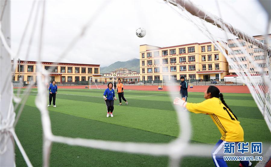 带球绕桩、争顶头球、分组对抗……在海拔3200米的甘肃省甘南藏族自治州碌曲县藏族中学的操场上,身穿10号球衣的藏族女孩万得草正和队友们一起,在教练的带领下,进行体能和足球技战术的训练。 这群皮肤黝黑的“追风女孩”都是碌曲县藏族中学女子足球队的队员。每天清晨、傍晚、大课间甚至周末,她们都坚持训练,风雨无阻地奔跑在绿茵场上,因为在她们每个人心里,都藏着一个足球梦。 司职前锋的高二年级女生万得草是这支球队的队长,从初中就开始住校的她通过一次偶然的机会接触到足球,便喜欢上了带球奔跑的感觉。只要有时间,她就会换上心爱的球衣球鞋,享受踢球带来的快乐。 “万得草是我们球队的核心,还是队里的学霸。因为她不仅球技好,学习也好。足球让我们成为很好的朋友。”队友扎西吉说。 碌曲县藏族中学是甘南藏族自治州青少年足球训练基地。过去,在这所寄宿制学校里,每当男生们踢球时都有很多女生围在场边观赛。为了让这些喜欢看足球的女孩子也有机会奔跑在绿茵场上,校长贡去乎才旦和几名热爱足球的老师一起于2015年成立了学校女子足球队。 “足球是草原上很受欢迎的运动,对女孩子也是如此,我们学校每周都有足球联赛,足球给孩子们带来力量和快乐。”校长贡去乎才旦说。 甘南州青少年校园足球联赛冠军、甘南州校园足球特色学校锦标赛冠军、甘南州中学生运动会女子足球比赛冠军……5年来,碌曲县藏族中学女足逐渐成长为当地校园足球的一支劲旅,这群草原女孩的“足球梦”也开始启程。 “只要在场上奔跑,就有一种说不出的快乐,我享受踢球的过程。”万得草露出甜美的笑容,“我会更加努力学习训练,希望考上理想的大学,告诉大家踢球的女孩很优秀”。 提起未来,碌曲县藏族中学女子足球队主教练贡保东知的心中充满希望。在他看来,足球是这些草原女孩走向精彩世界的重要一步,希望有更多社会力量关注校园女足,帮助她们实现自己的足球梦。 碌曲县藏族中学女足队员万得草(左二)在分组对抗赛中射门(6月22日摄)。 新华社记者陈斌摄