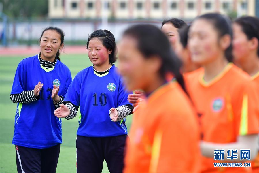 带球绕桩、争顶头球、分组对抗……在海拔3200米的甘肃省甘南藏族自治州碌曲县藏族中学的操场上,身穿10号球衣的藏族女孩万得草正和队友们一起,在教练的带领下,进行体能和足球技战术的训练。 这群皮肤黝黑的“追风女孩”都是碌曲县藏族中学女子足球队的队员。每天清晨、傍晚、大课间甚至周末,她们都坚持训练,风雨无阻地奔跑在绿茵场上,因为在她们每个人心里,都藏着一个足球梦。 司职前锋的高二年级女生万得草是这支球队的队长,从初中就开始住校的她通过一次偶然的机会接触到足球,便喜欢上了带球奔跑的感觉。只要有时间,她就会换上心爱的球衣球鞋,享受踢球带来的快乐。 “万得草是我们球队的核心,还是队里的学霸。因为她不仅球技好,学习也好。足球让我们成为很好的朋友。”队友扎西吉说。 碌曲县藏族中学是甘南藏族自治州青少年足球训练基地。过去,在这所寄宿制学校里,每当男生们踢球时都有很多女生围在场边观赛。为了让这些喜欢看足球的女孩子也有机会奔跑在绿茵场上,校长贡去乎才旦和几名热爱足球的老师一起于2015年成立了学校女子足球队。 “足球是草原上很受欢迎的运动,对女孩子也是如此,我们学校每周都有足球联赛,足球给孩子们带来力量和快乐。”校长贡去乎才旦说。 甘南州青少年校园足球联赛冠军、甘南州校园足球特色学校锦标赛冠军、甘南州中学生运动会女子足球比赛冠军……5年来,碌曲县藏族中学女足逐渐成长为当地校园足球的一支劲旅,这群草原女孩的“足球梦”也开始启程。 “只要在场上奔跑,就有一种说不出的快乐,我享受踢球的过程。”万得草露出甜美的笑容,“我会更加努力学习训练,希望考上理想的大学,告诉大家踢球的女孩很优秀”。 提起未来,碌曲县藏族中学女子足球队主教练贡保东知的心中充满希望。在他看来,足球是这些草原女孩走向精彩世界的重要一步,希望有更多社会力量关注校园女足,帮助她们实现自己的足球梦。 碌曲县藏族中学女足队员万得草(左二)为队友鼓掌加油(6月22日摄)。 新华社记者陈斌摄