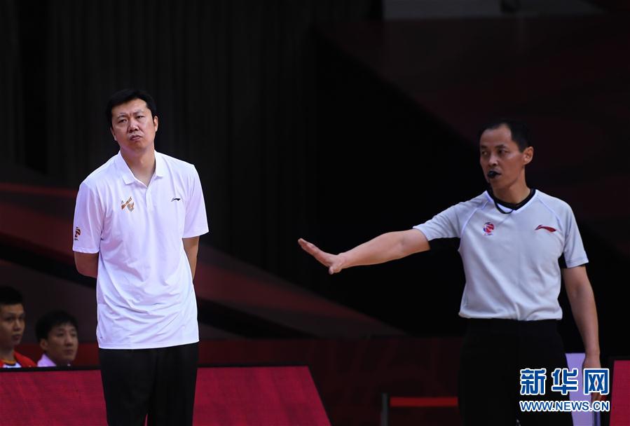 6月24日,八一南昌队主教练王治郅(左)在场边观战。 当日,在青岛国信体育馆举行的2019-2020赛季中国男子篮球职业联赛(CBA)复赛第一阶段比赛中,青岛国信双星队以94比82战胜八一南昌队。 新华社记者李紫恒摄