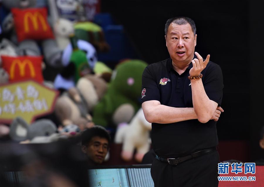 6月24日,青岛国信双星队主教练吴庆龙在场边指导队员。 当日,在青岛国信体育馆举行的2019-2020赛季中国男子篮球职业联赛(CBA)复赛第一阶段比赛中,青岛国信双星队以94比82战胜八一南昌队。 新华社记者李紫恒摄