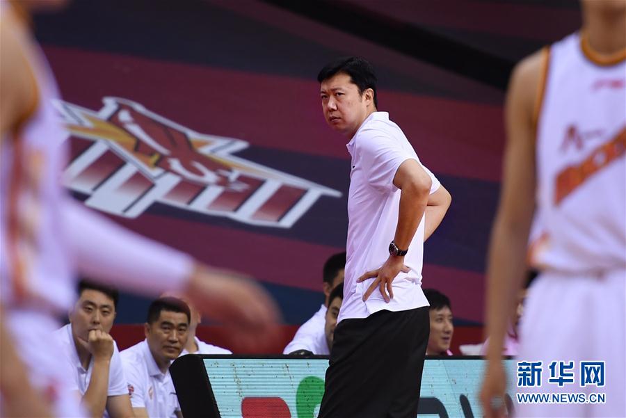 6月24日,八一南昌队主教练王治郅在场边观战。 当日,在青岛国信体育馆举行的2019-2020赛季中国男子篮球职业联赛(CBA)复赛第一阶段比赛中,青岛国信双星队以94比82战胜八一南昌队。 新华社记者李紫恒摄