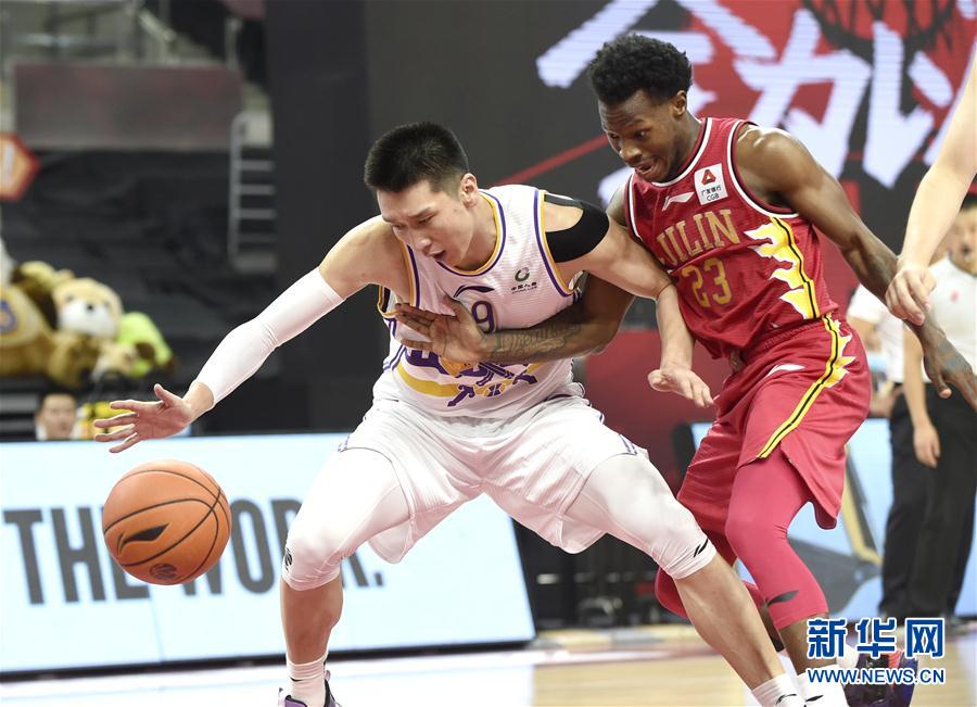 6月28日,北京控股队球员孙悦(左)和吉林九台农商银行队球员希尔拼抢。 当日,在广东东莞举行的2019-2020赛季中国男子篮球职业联赛(CBA)复赛第一阶段比赛中,北京控股队经过一个加时赛后以117比115战胜吉林九台农商银行队。 新华社记者 卢汉欣 摄