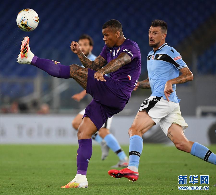 6月27日,佛罗伦萨队球员伊戈尔(左)与拉齐奥队球员阿切尔比在比赛中拼抢。当日,在2019-2020赛季意大利足球甲级联赛第28轮比赛中,拉齐奥队主场以2比1战胜佛罗伦萨队。 新华社发