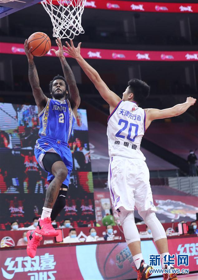 6月28日,苏州肯帝亚队球员布莱克尼(左)在比赛中上篮。 当日,在广东东莞银行篮球中心举行的2019-2020赛季中国男子篮球职业联赛(CBA)复赛第一阶段比赛中,苏州肯帝亚队以120比104战胜天津先行者队。 新华社发