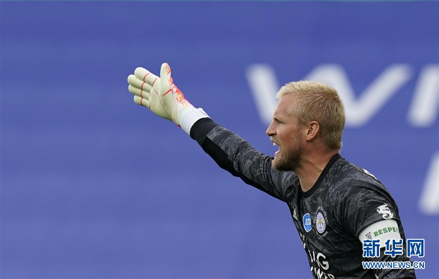 6月28日,莱斯特城队守门员卡斯帕·舒梅切尔在比赛中。 当日,在2019-2020赛季英格兰足总杯四分之一决赛中,切尔西队客场以1比0战胜莱斯特城队,晋级四强。 新华社/路透